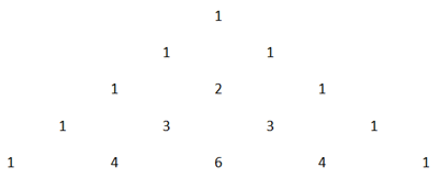 Gambar di atas merupakan susunan bilangan pada segitiga pascal. Diberi nama segitiga pascal karena seorang ahli matematika dari Perancis yang bernama Blaise Pascal menemukan susunan bilangan. Bilangan tersebut terbentuk dari sebuah aturan geometri yang berisi susunan koefisien binomial yang bentuknya menyerupai segitiga. Di dalam segitiga pascal, bilangan yang terdapat pada satu baris yang sama dijumlahkan menghasilkan bilangan yang ada di baris bawahnya.