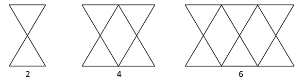 Pada gambar, barisan 2, 4, 6 dinamakan pola bilangan genap, dimana pada pola 1, 2, dan 3 terbentuk segitiga sebanyak 2, 4 dan 6.