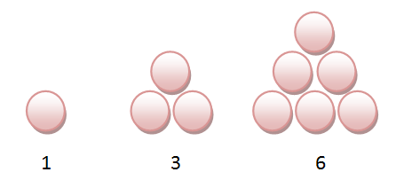 Dari gambar di atas, barisan 1, 3, 6 disebut dengan pola bilangan segitiga.
