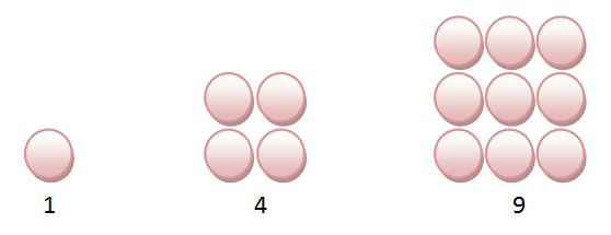 Pola bilangan persegi merupakan suatu pola bilangan yang terbentuk oleh bilangan-bilangan hasil kuadrat dan jika digambar polanya membentuk suatu bentuk persegi. Gambar pola :