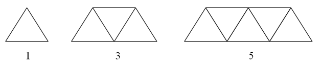 Dari gambar di atas, pola ke 1, 2, dan 3 membentuk barisan segitiga sebanyak 1, 3, dan 5. Ini dinamakan pola bilangan ganjil. Pola bilangan ganjil merupakan pola bilangan yang terbentuk oleh bilangan ganjil, dengan rumus :